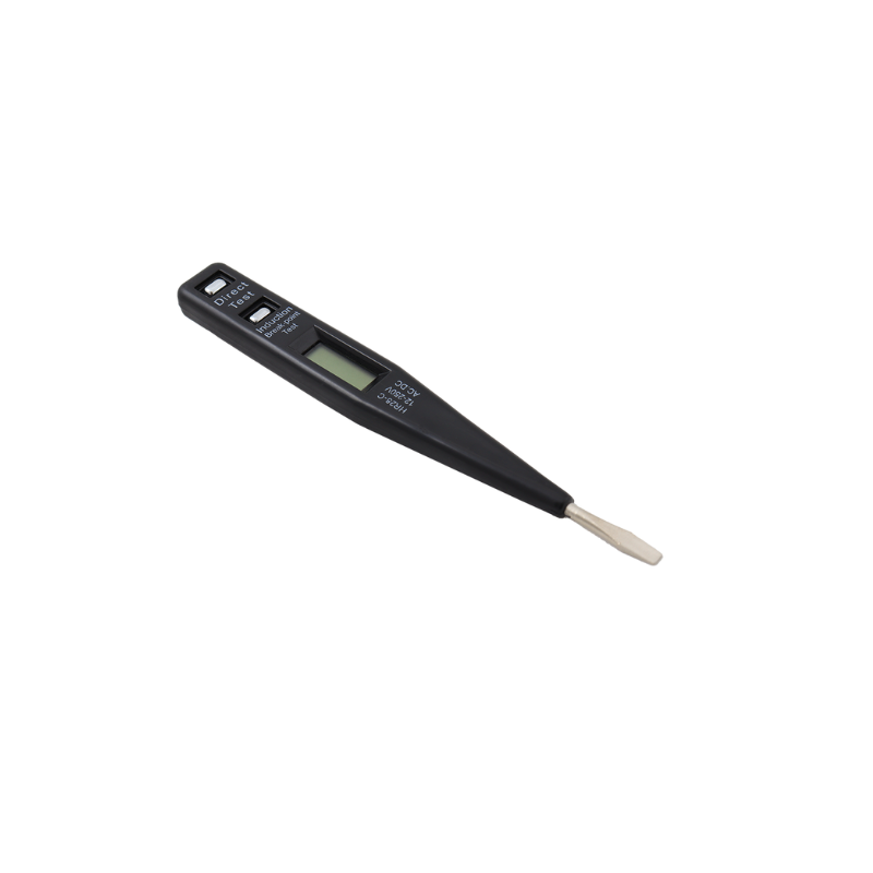 The LCD screen shows the values by touching the equipment-to-be-checked with the Ludic Zeus power polarity checker screwdriver blade.