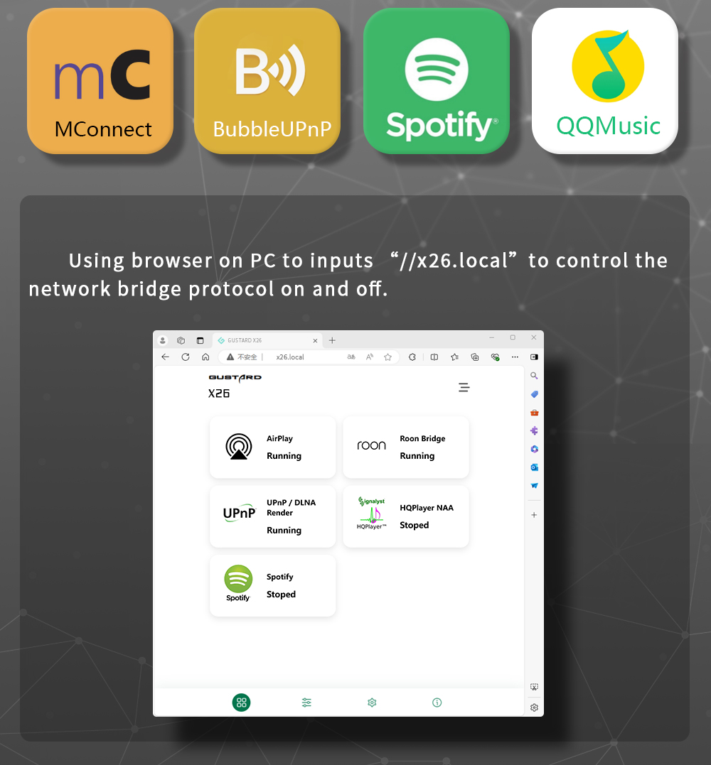 The Gustard X26III Network Streamer and DAC is a high-end audio device featuring dual ESS ES9039SPRO chips for superior Digital to Analog Conversion, with each chip dedicated to a separate channel. It boasts a high-performance DSP digital filter on the Analog Device SHARC platform, reducing in-band aliasing noise and enhancing sound quality. The FPGA programmable logic chip integrates advanced technologies like clock management and DOP demodulation, ensuring excellent sound quality. The device also includes a high-performance clock module with PLL for stable and accurate clock signals, and a hybrid IV conversion circuit with discrete Class A components for a warm, natural sound. Additionally, the self-developed network bridge system, in collaboration with CelAudio, optimizes music playback by minimizing latency and jitter.