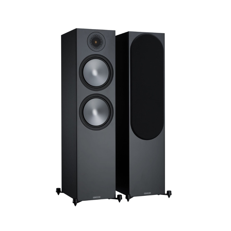 The Monitor Audio Bronze 500 tower speakers are the largest in the Bronze series, delivering the powerful and detailed audio required by even the most demanding audiophiles. The pinnacle of the Bronze series, the Bronze 500s feature a larger enclosure housing a Monitor Audio 25mm C-CAM Gold Dome tweeter with a Uniform Dispersion (UD) Waveguide, plus two new 8-inch drivers for enhanced performance. Standing just under a meter tall on sturdy steel feet, the Bronze 500s project a graceful presence that complements their beautifully detailed audio reproduction.